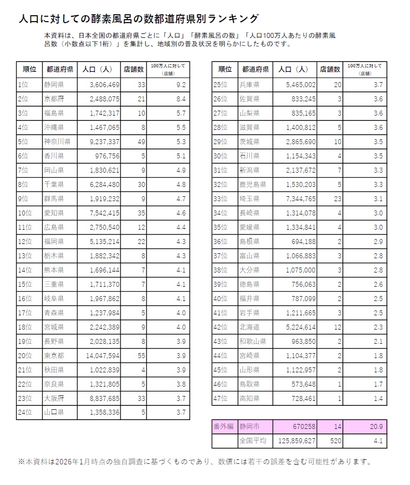 ・人口100万人あたりの酵素風呂数